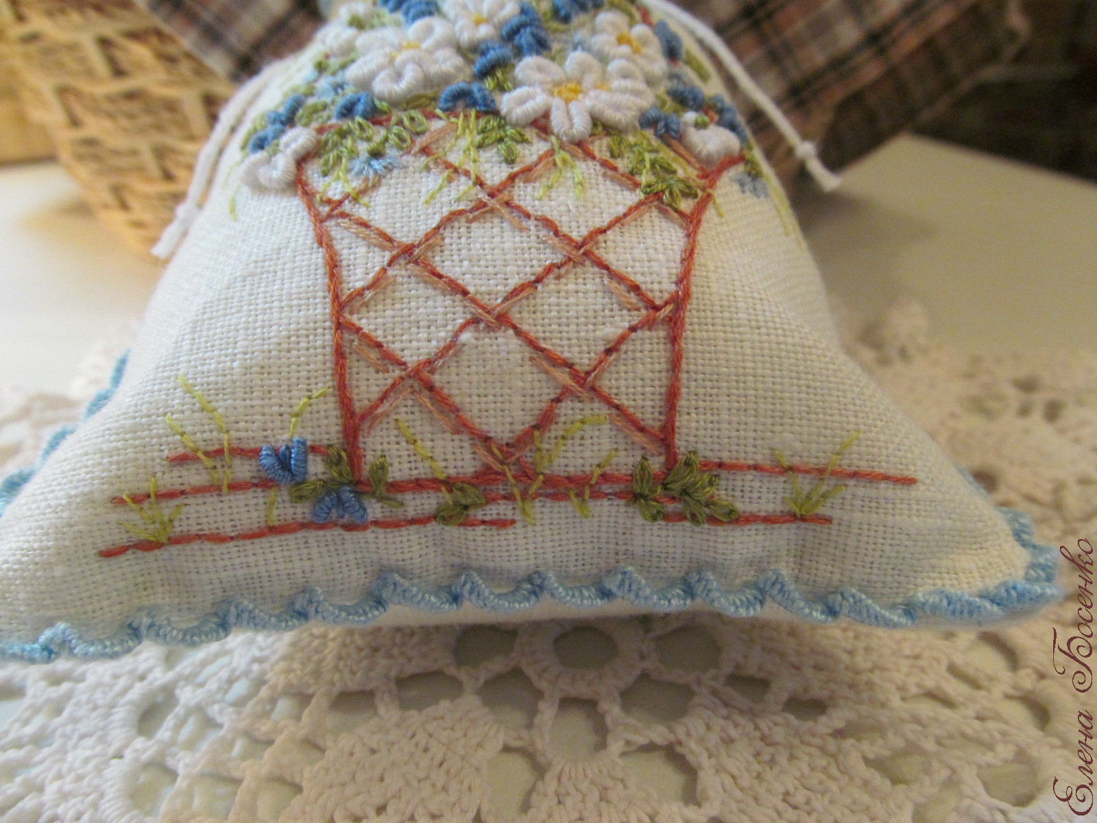 Мешочки из ткани смешанных волокон на подкладке из хлопка. Швы – наборный стежок, тамбурный, коралловый, гладь, рококо.