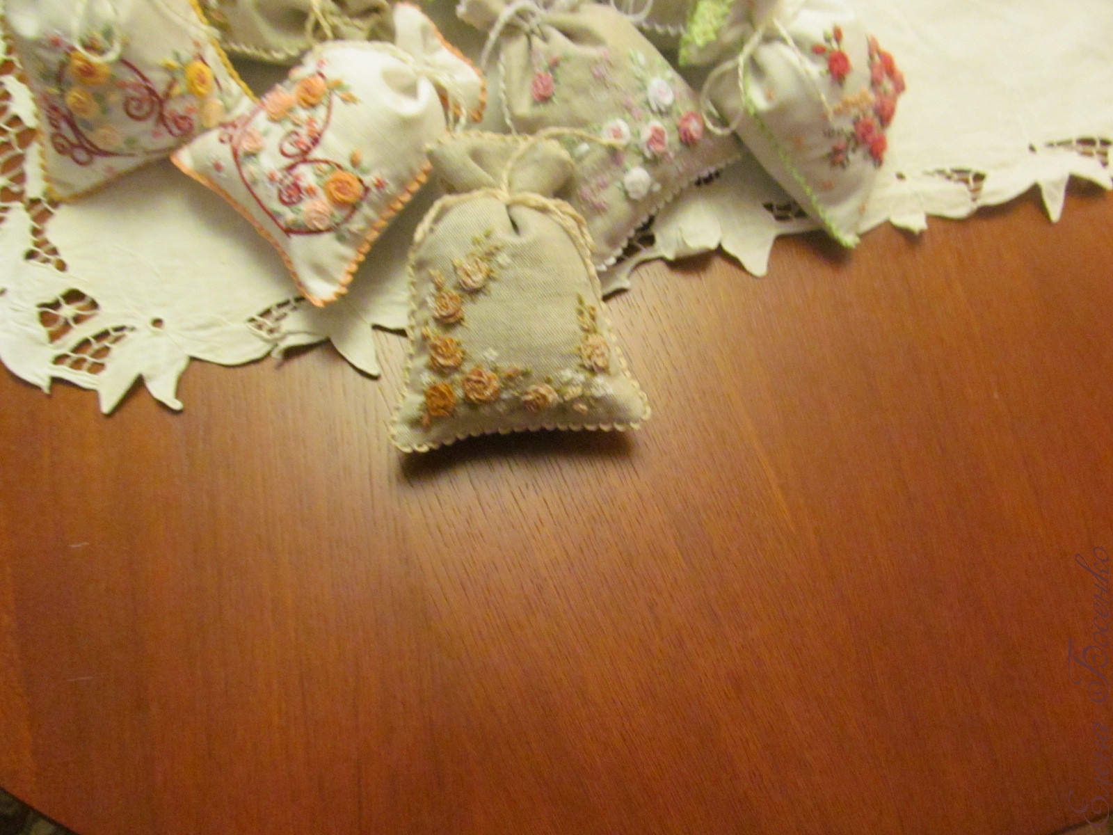 Окантовка мешочка – игольное кружево фриволите без традиционных сцепок, эффект ажурности.